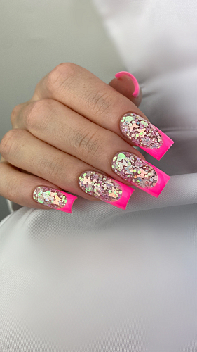 Жемчужный коралл погрузит в волшебный мир чарующих сирен. Сияющий дизайн, россыпь из конфетти –