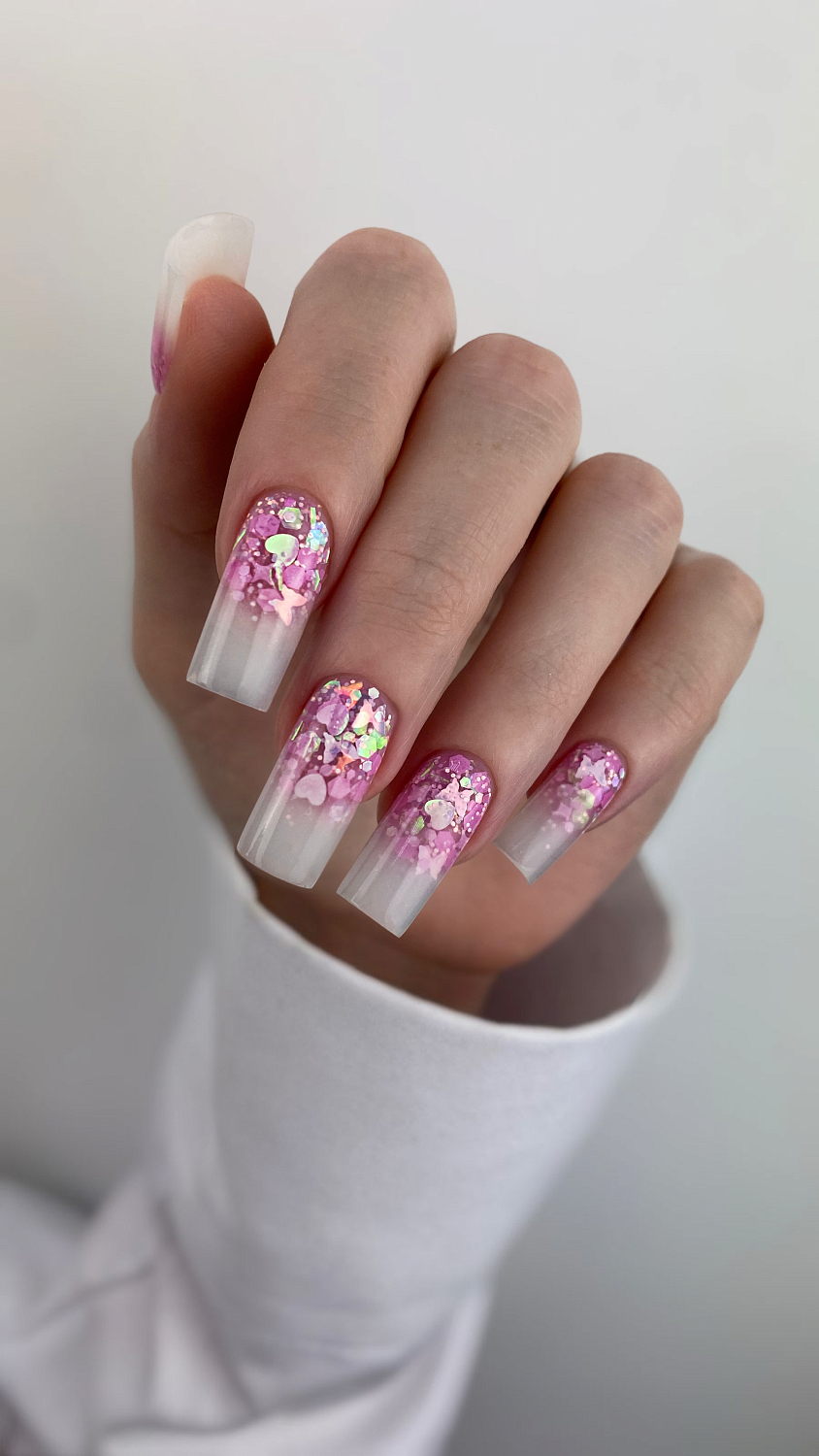 Розовый коралл погрузит в волшебный мир чарующих сирен. Сияющий дизайн, россыпь из конфетти –