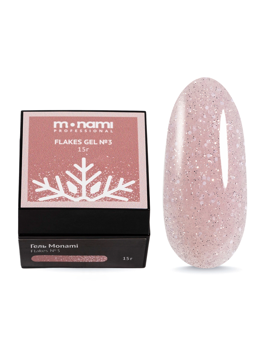 • Flakes №3 - Теплый бежевый, как песчаные дюны, припорошенные снегом. Этот оттенок привнесет в маникюр ощущение уюта и спокойствия.