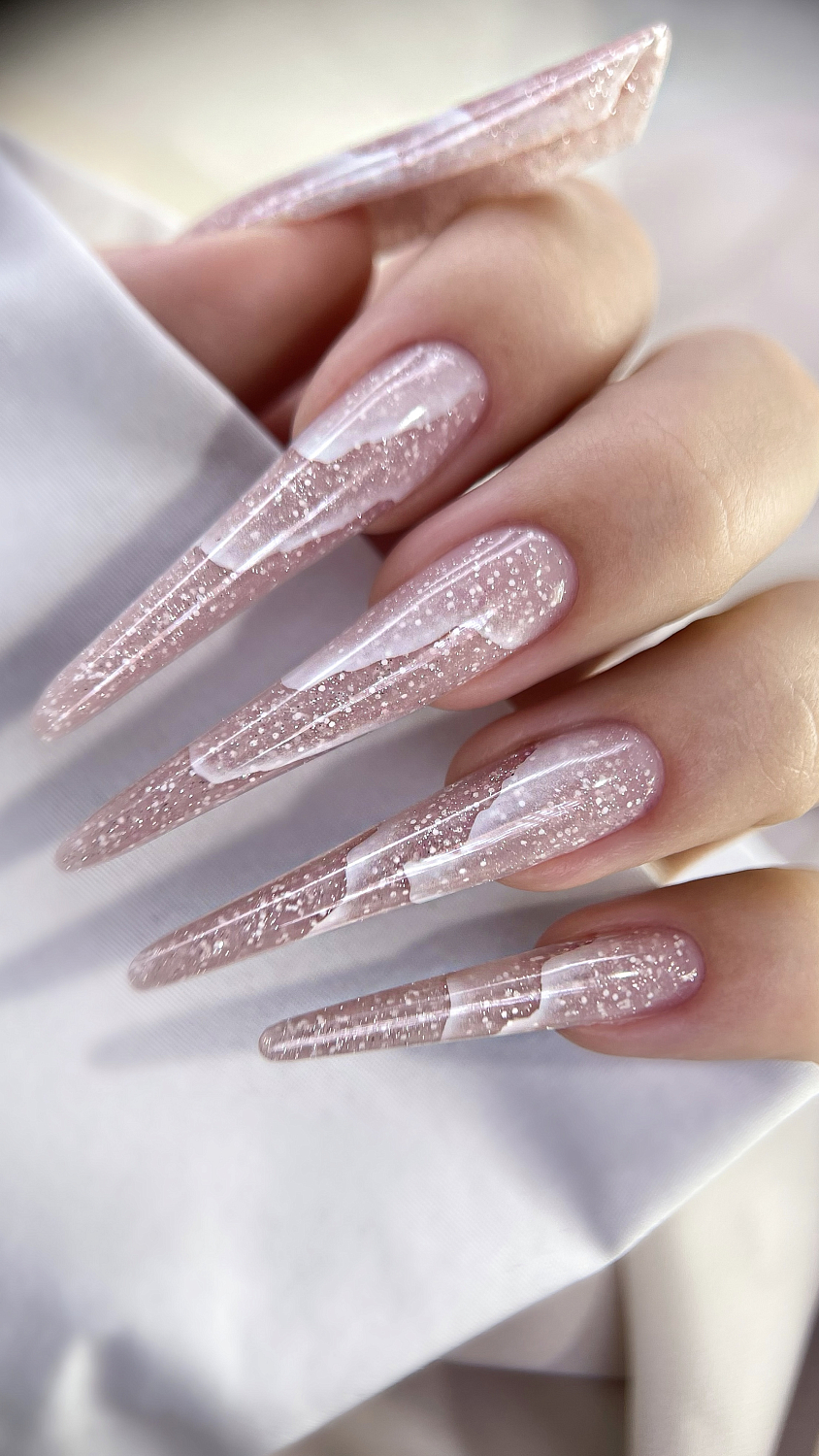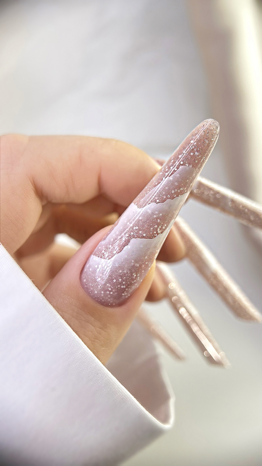 Нежные пастельные оттенки, усыпанные деликатными белыми точками, словно хлопьями первого снега, подарят ощущение очарования зимней свежестью. Создайте прочный и изысканный маникюр, напоминающий о тихих зимних вечерах и волшебстве приближающихся праздников!