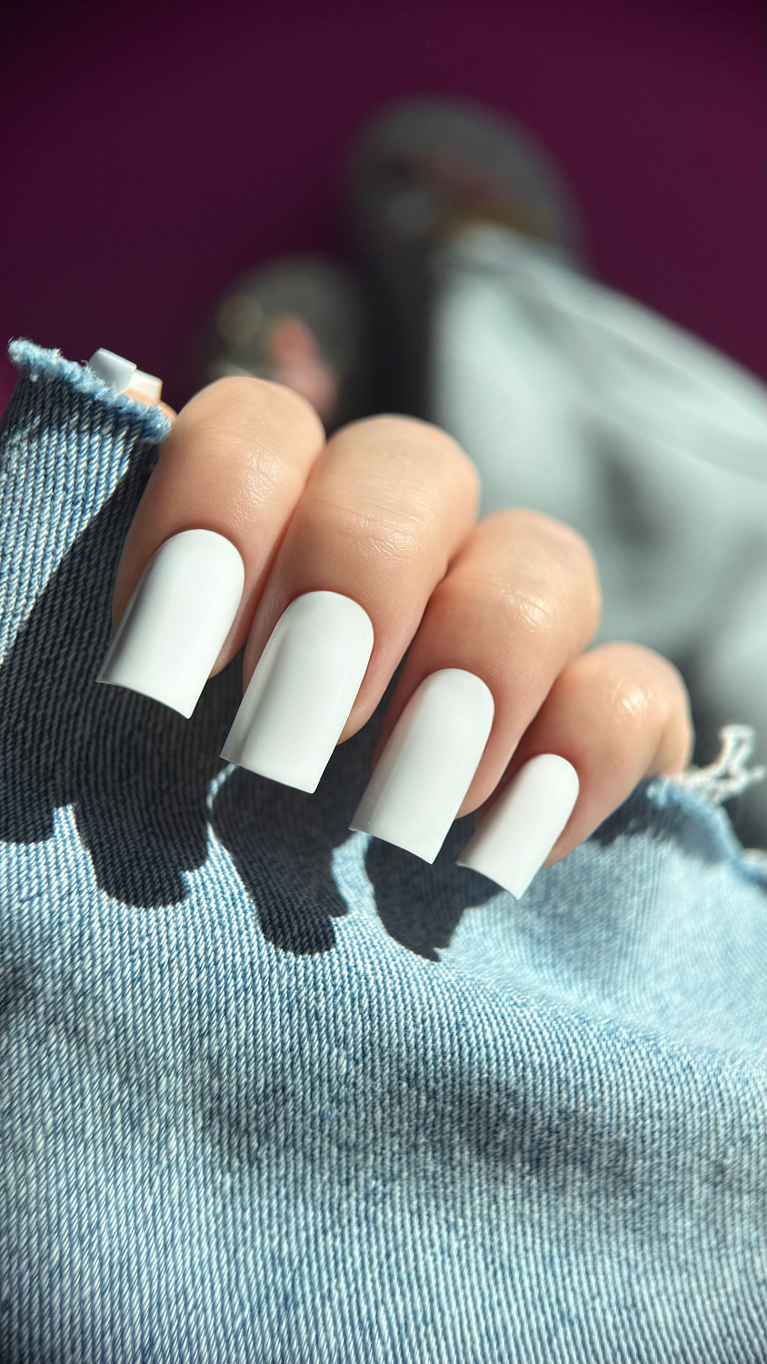 Гель-лак Monami в классическом белом цвете без переливов – это непревзойденное качество покрытия и стойкость вашего маникюра.