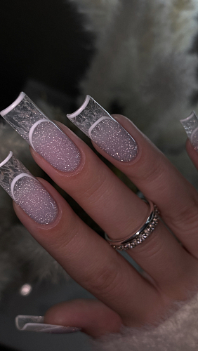 - Мерцающие частицы равномерно распределяются по ногтевой пластине, не выступают наружу из покрытия и не требуют опила;