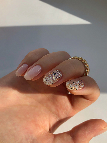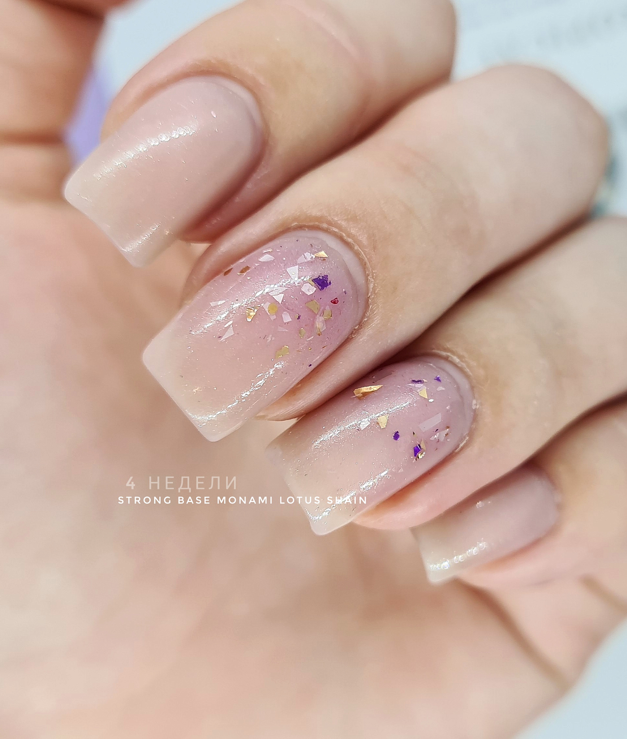 Наносим базу, при необходимости делаем выравнивание ногтевой пластины. Время полимеризации в UV-лампе - 1 минута.