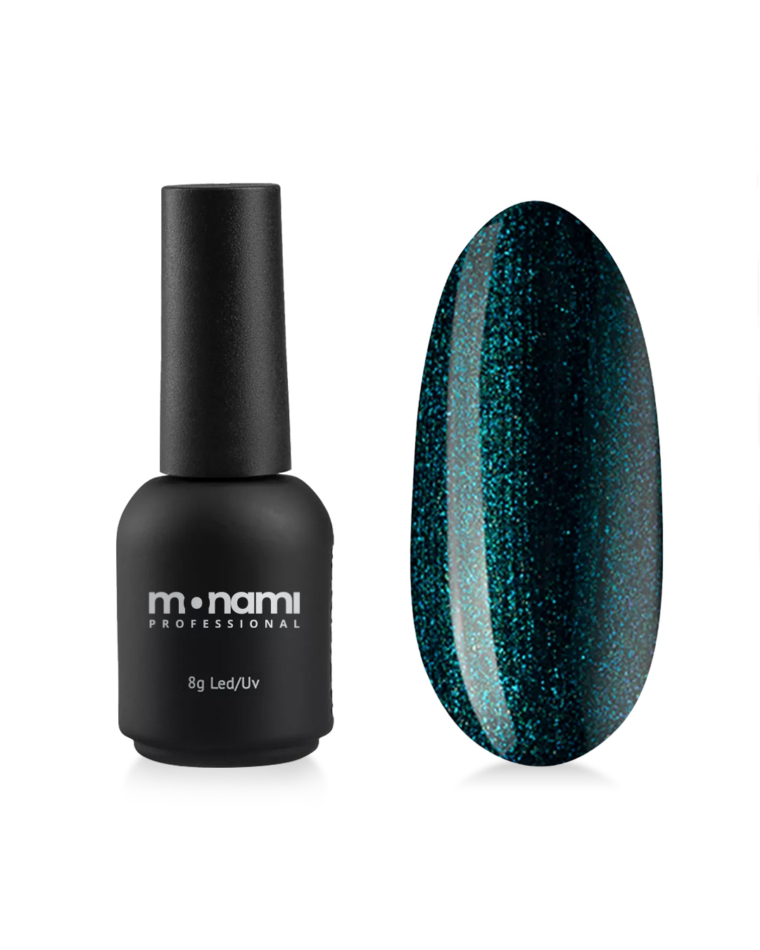 Гель-лак Monami в цвете берлинская лазурь, с блестками – это непревзойденное качество покрытия и стойкость вашего маникюра.