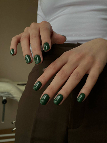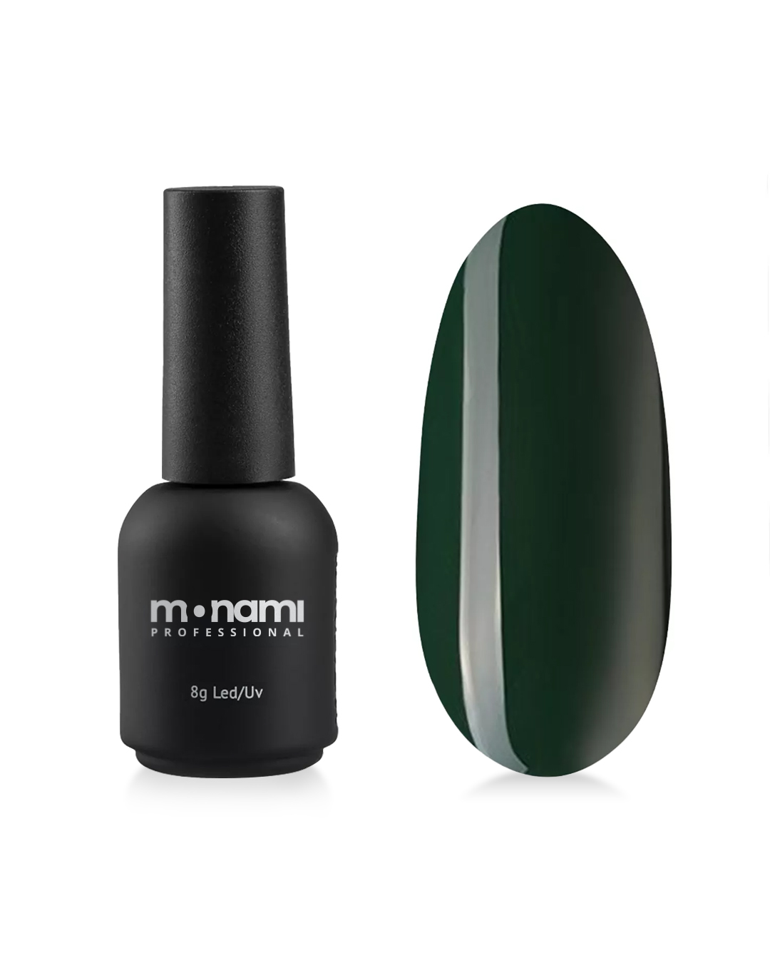 Гель-лак Monami в глубоком темно-зеленом цвете без переливов – это непревзойденное качество покрытия и стойкость вашего маникюра.