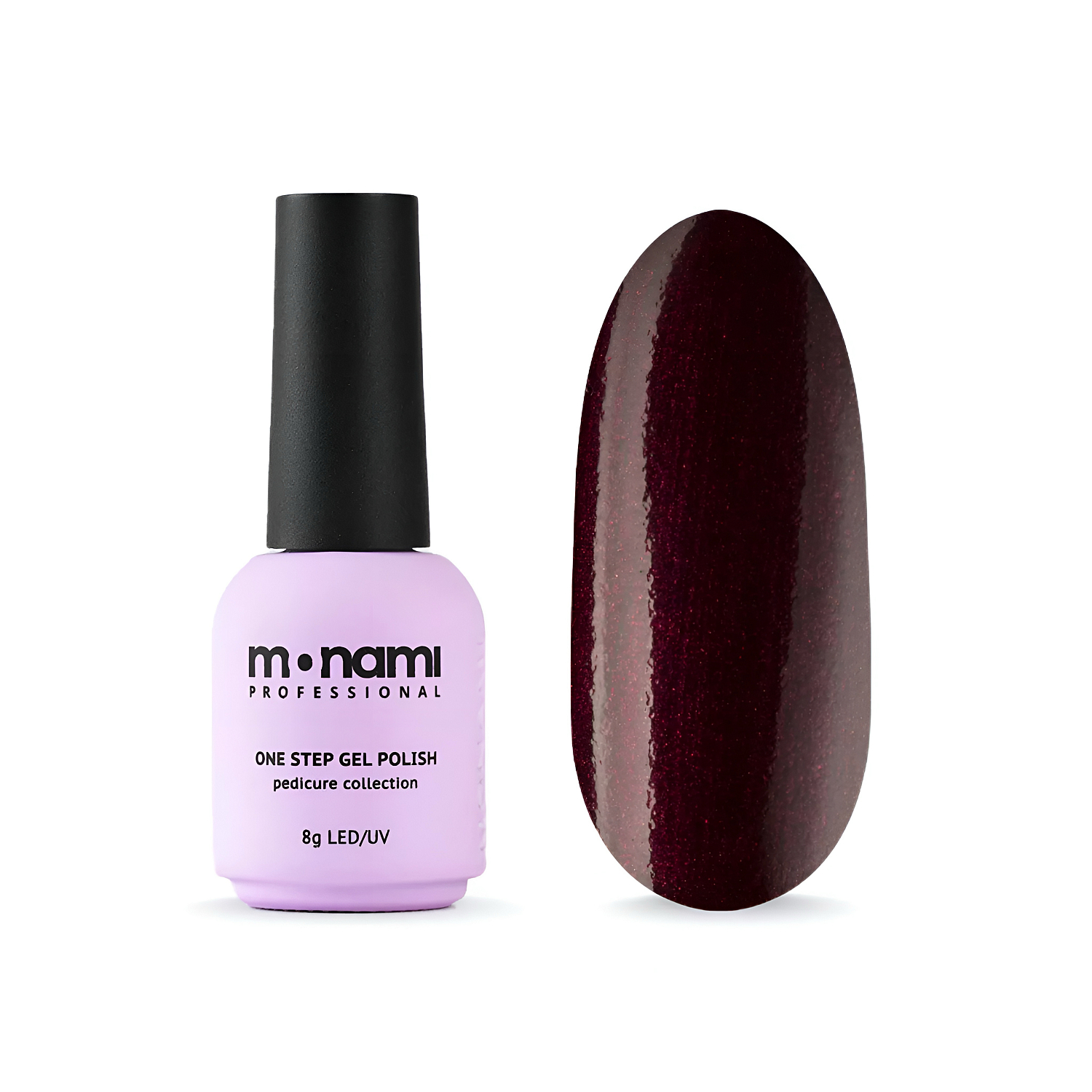 Однофазный гель-лак Monami в бордовом цвете с блестками – это непревзойденное качество покрытия и стойкость вашего маникюра.