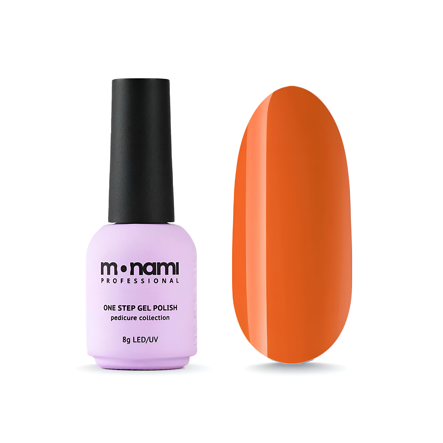 Однофазный гель-лак Monami в ярко-оранжевом цвете без переливов – это непревзойденное качество покрытия и стойкость вашего маникюра.