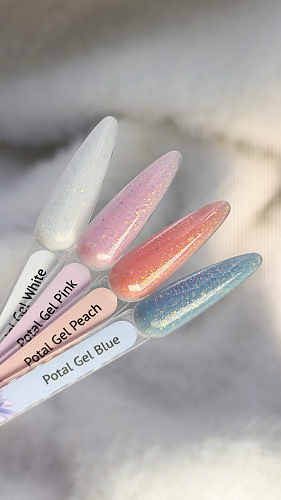 Potal Gel - 4 камуфлирующих оттенка с мелкой поталью. Погрузитесь в люксовую игру света и текстуры: коллекция potal gel объединяет прочную профессиональную формулу жестких гелей и тонкую роскошь потали. Каждый оттенок — это чистая палитра эмоций, где ледяные вкрапления создают объем, глубину и благородный мерцающий акцент, идеально подходящий для вечерних образов и премиальных дизайнов.