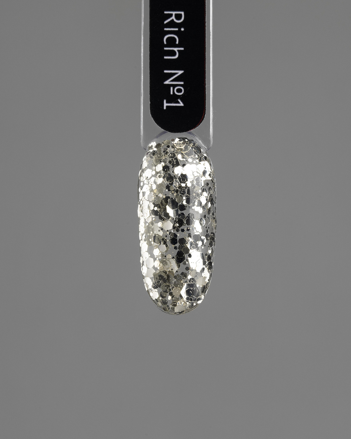 Гель-лак Monami с зеркальными шестигранниками серебряного цвета. Входящие в состав блёстки разных размеров комфортны в работе, легко выкладываются в узоры и идеальны для дизайнов, имеют роскошный, привлекающий внимание блеск, создавая wow-эффект.