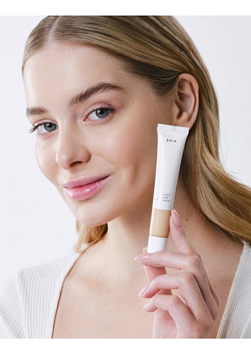 Тональный крем обладает легкой, жидкой текстурой с большим количеством тонирующих пигментов, которая образует невесомое атласное покрытие. Средство легко ложится и растушевывается без полос и пятен, подстраивается под естественный цвет лица.