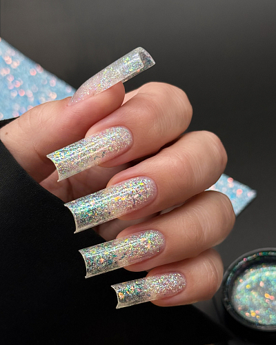 юки мелкого помола и разноцветным светоотражающим шиммером.