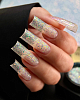 3. При использовании верхних форм - нанесите материал внутрь формы, отпечатайте на ноготь прихватив фонариком ,равномерно распределите. Просушите в лампе до полной полимеризации 60 сек.