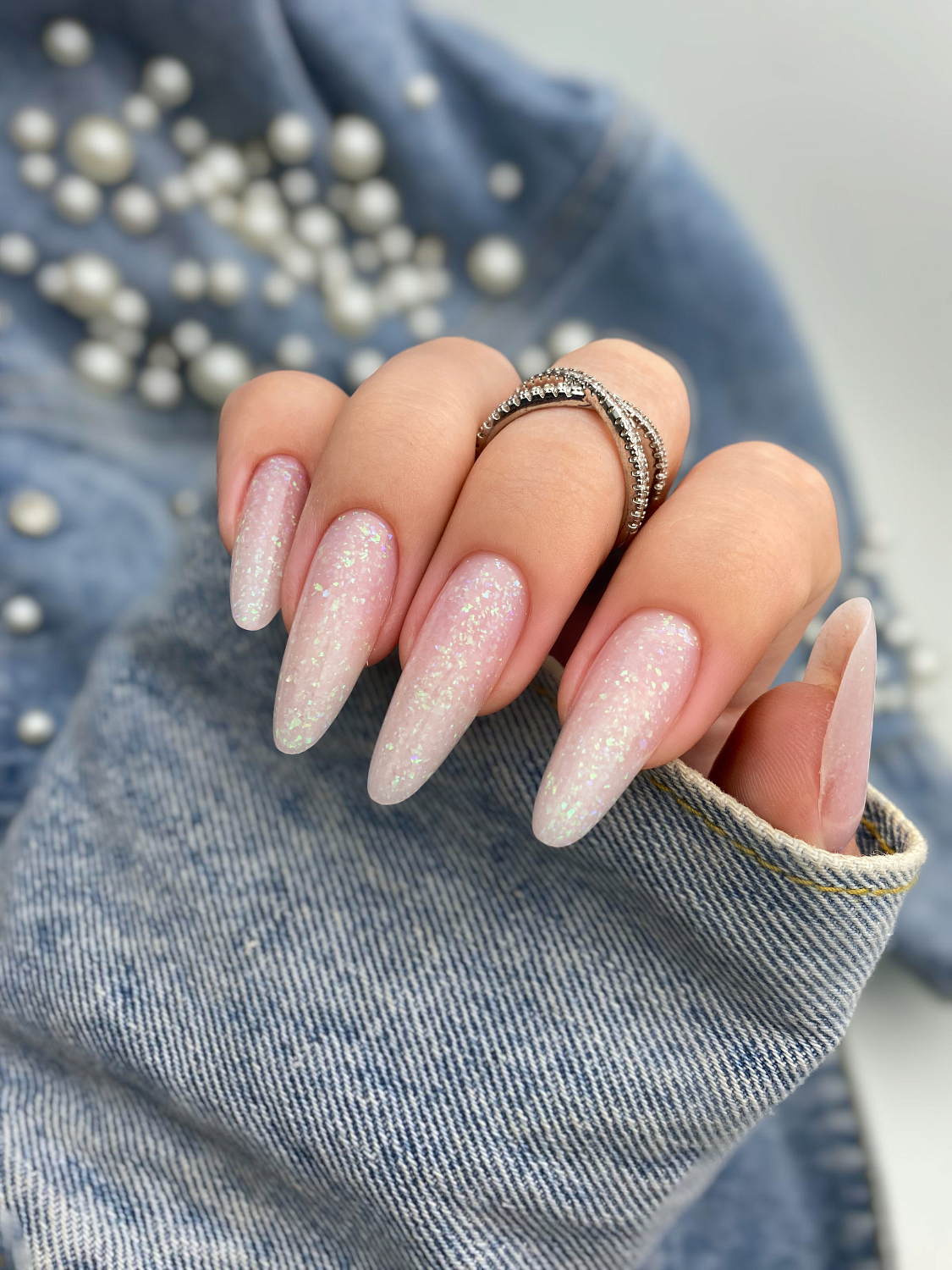 Hатуральный нюдовый оттенок с контрастными частицами юки.