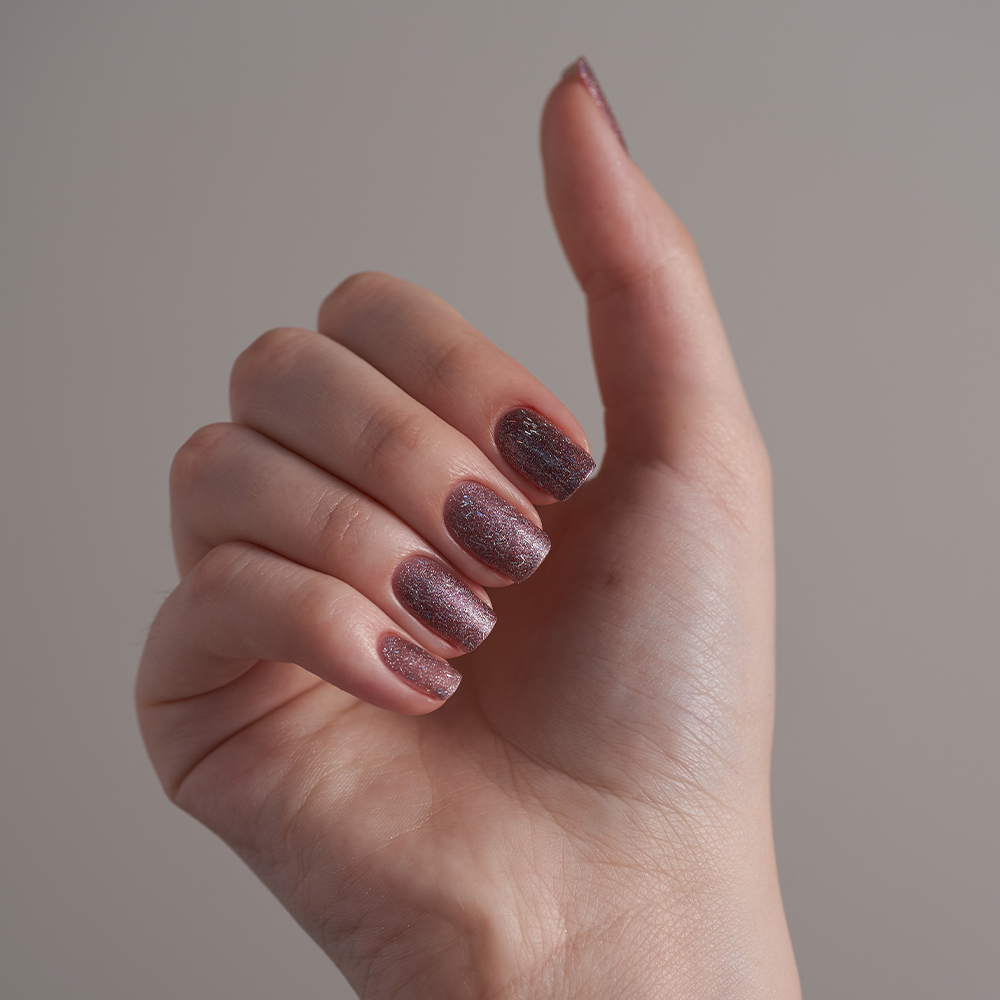 Это коллекция HOLO SANDS и у неё нет недостатков: после высыхания лак приобретает шероховатую «песочную» текстуру на ногтях с матовым и сверкающим финишем, который носится в 2 раза дольше без сколов и потертостей.
