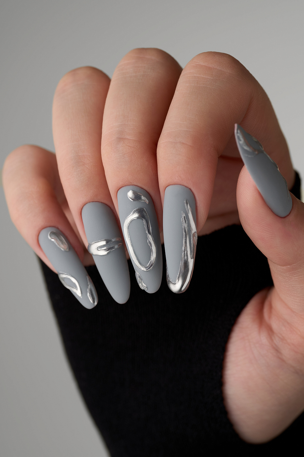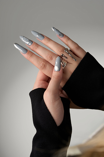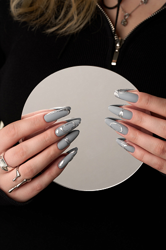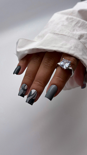 3. Нанесите гель-лак Space Gray полусухой кистью, тонким слоем и полимеризуйте в UV/LED лампе 60 сек.