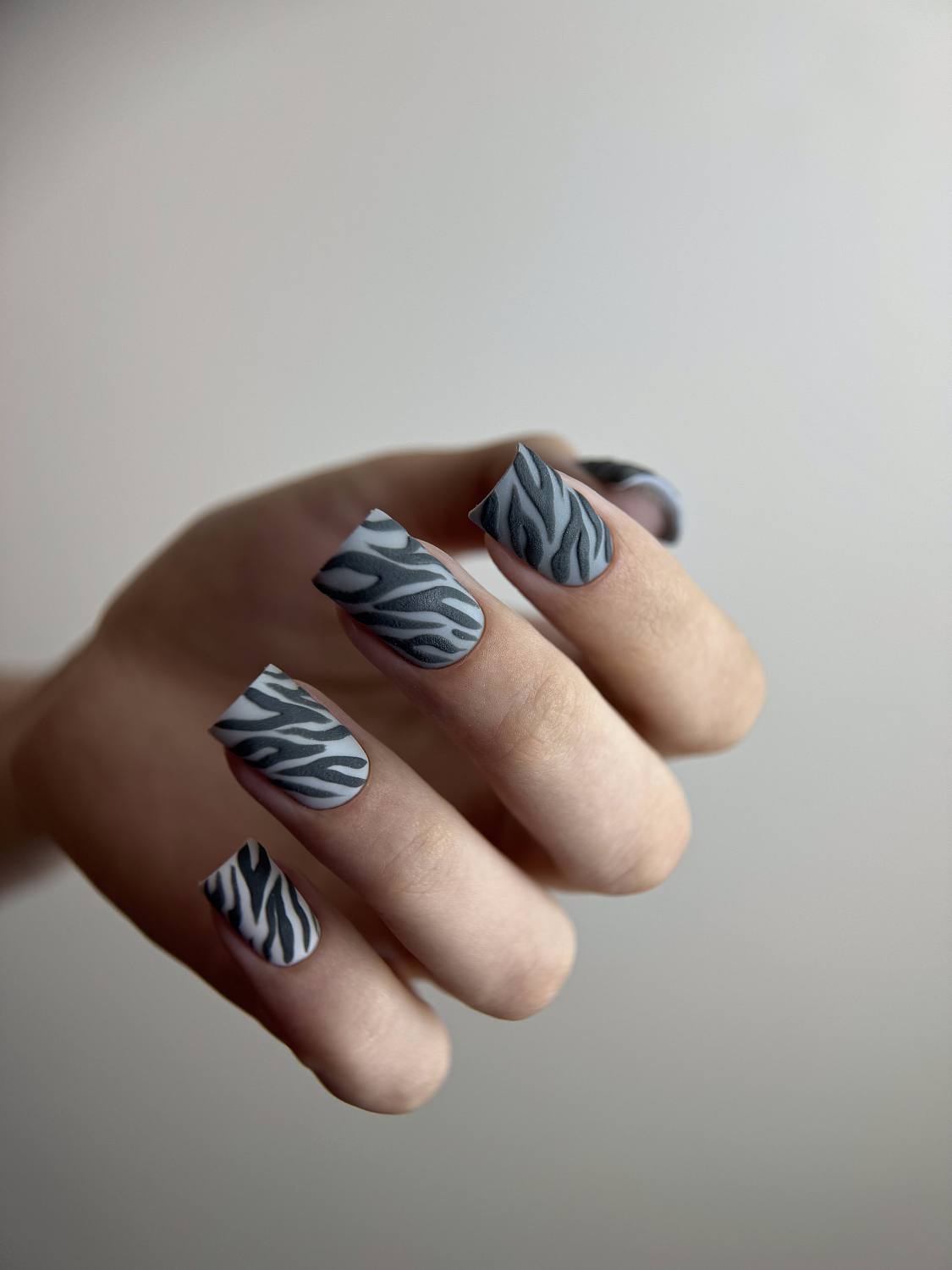 3. Нанесите гель-лак Space Gray полусухой кистью, тонким слоем и полимеризуйте в UV/LED лампе 60 сек.