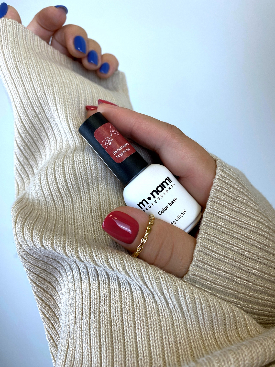 2. Нанести цветное базовое покрытие «Renaissance» в технике легкого выравнивания. Время полной полимеризации в LED/UV – лампе составляет 2 минуты.