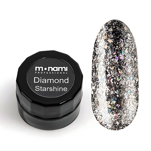 Гель-лак Monami в серебристом оттенке, с голографическими шестигранниками и мелкой слюдой, полупрозрачный– это непревзойденное качество покрытия и стойкость вашего маникюра.