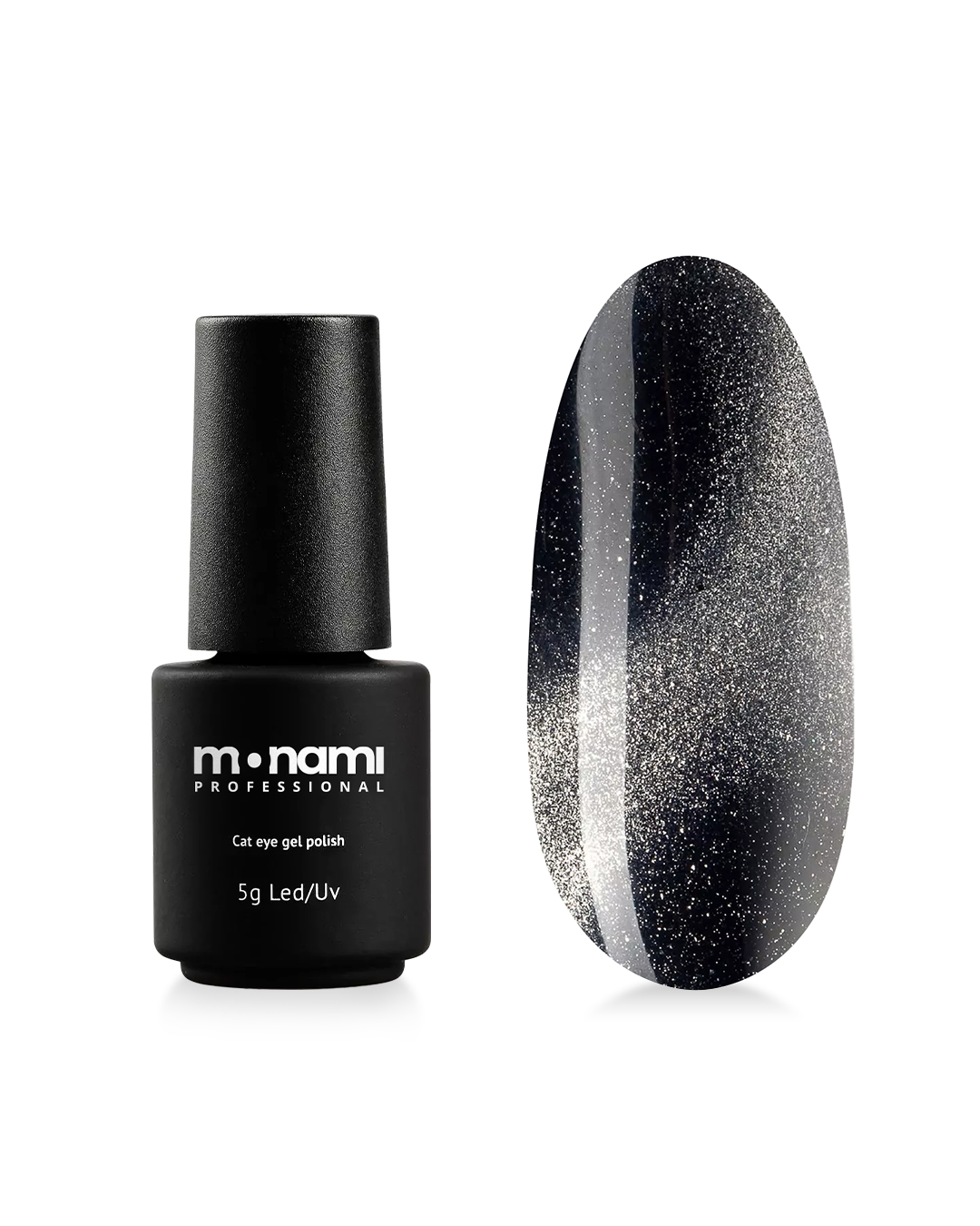 Гель-лак Monami в серебристом цвете с эффектом Кошачий глаз – это непревзойденное качество покрытия и стойкость вашего маникюра.
