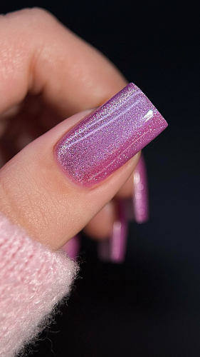 Гель-лак розового оттенка с эффектом Кошачий глаз, плотный.