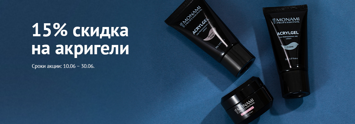 Успей приобрести акригели Monami по выгодной цене, со скидкой 15%