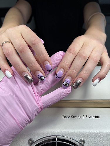 - Наносим базу, при необходимости делаем выравнивание ногтевой пластины. Время полимеризации в LED/UV-лампе - 1 минута.
