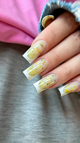 • Дизайн в один этап. Сухоцветы замешаны в полигель в идеальной пропорции — просто моделируете ноготь, и дизайн готов! Экономия до 20 минут на каждом клиенте.