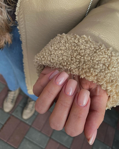Натурального оттенка с нежным розовым подтоном, без эффектов, полупрозрачная.