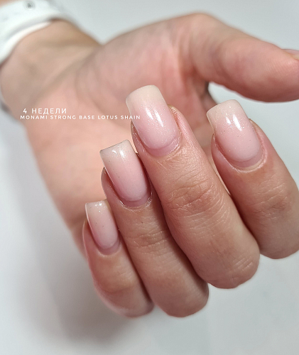 Наносим базу, при необходимости делаем выравнивание ногтевой пластины. Время полимеризации в UV-лампе - 1 минута.