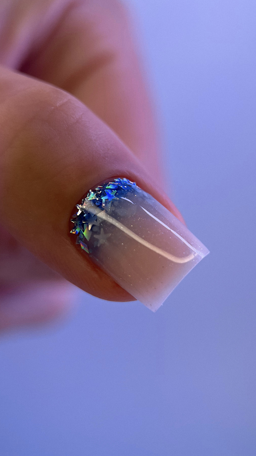 Наносим базу, при необходимости делаем выравнивание ногтевой пластины. Время полимеризации в UV-лампе - 1 минута.