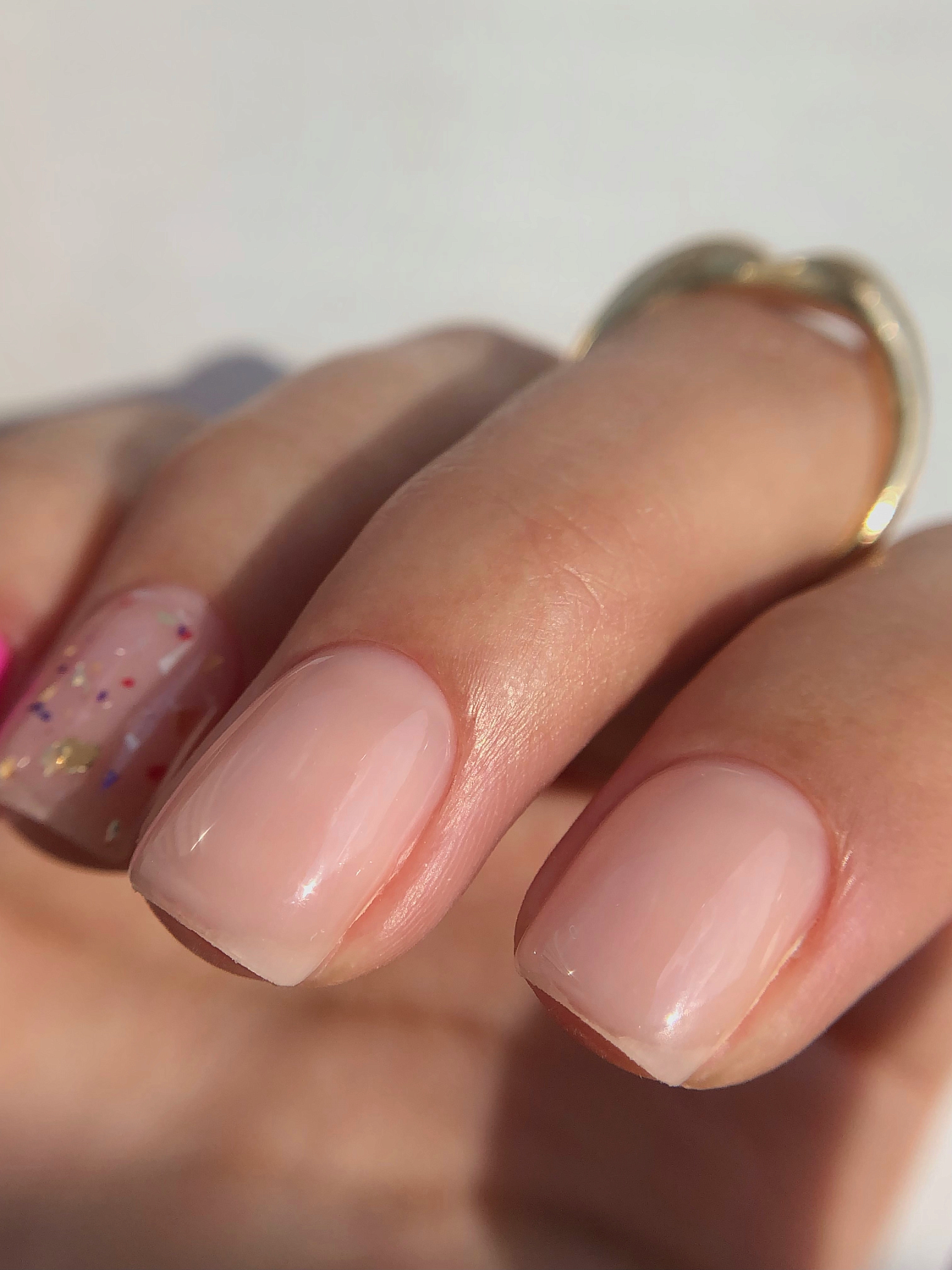 Наносим базу, при необходимости делаем выравнивание ногтевой пластины. Время полимеризации в UV-лампе - 1 минута.